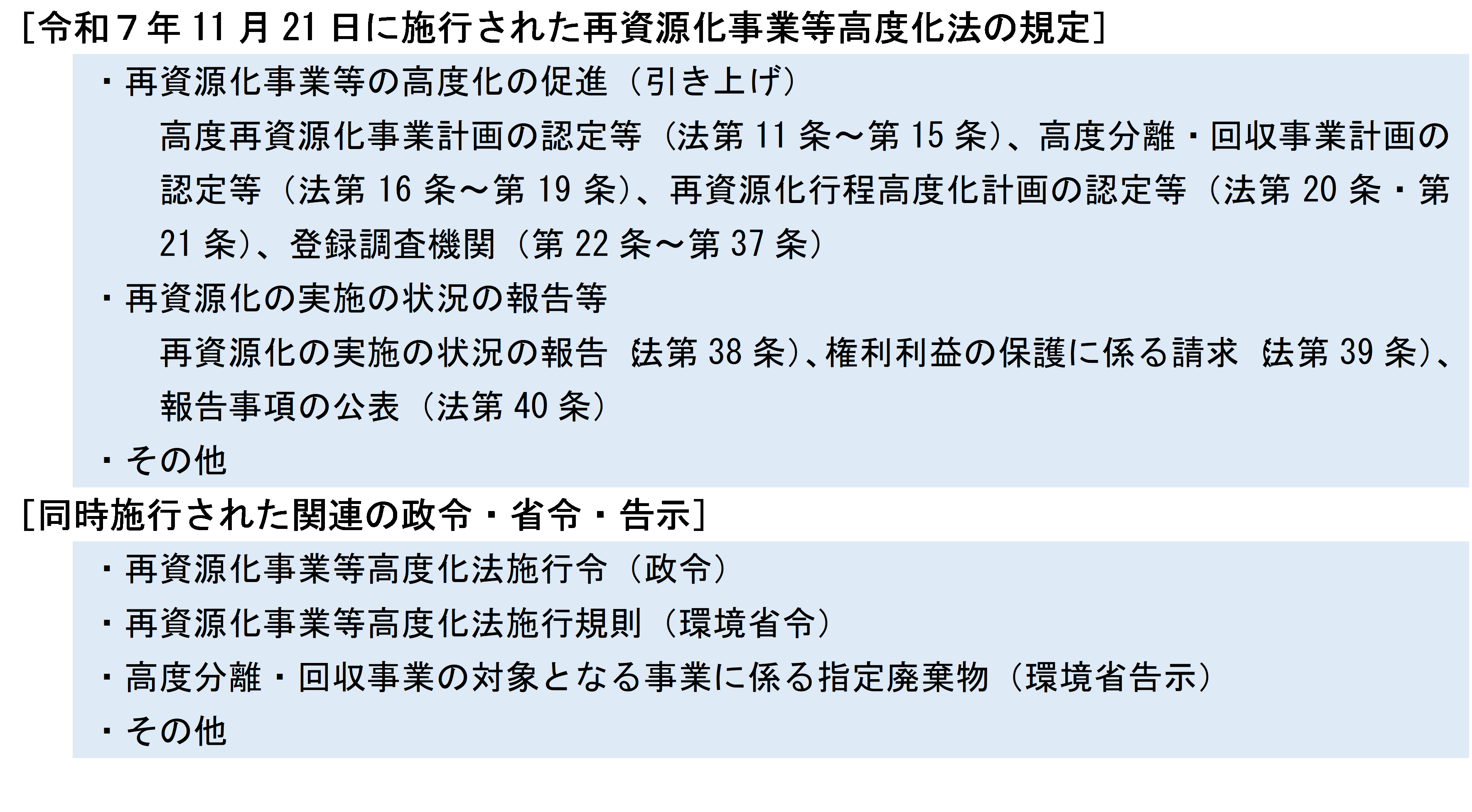 再資源化事業等高度化法の残りの規定は、令和7年11月21日に施行されました。