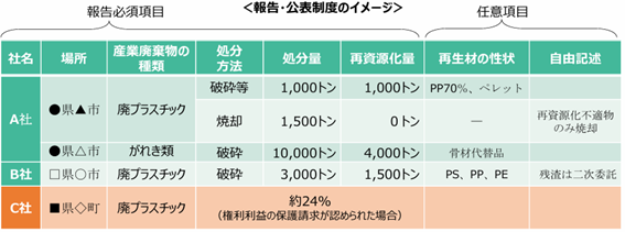 特定産業廃棄物処分事業者以外の事業者も、再生部品等の提供元を探す製造事業者等との連携をねらって環境大臣による公表を求める場合には、任意で報告することができます。